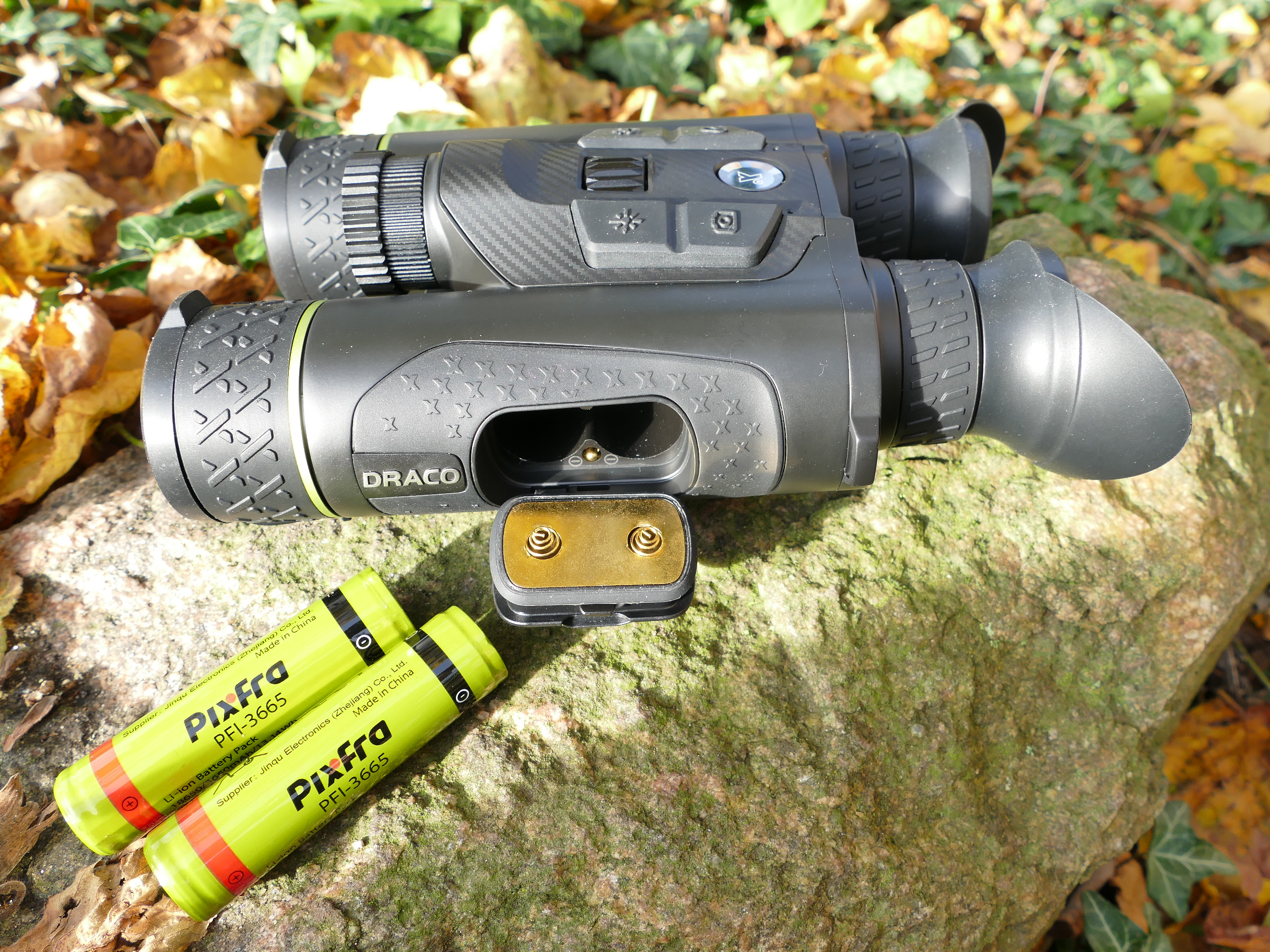 Die Draco Serie von Pixfra vereint Wärmebild mit digitaler Tages- und Nachtsicht. Ein integrierter 940nm IR-Aufheller und ein Laserentfernungsmesser mit 1000m Reichweite runden das Gerät ab. Das Ansprechen des Rehbocks beim Abendansitz fällt damit sehr leicht und das zusätzliche Fernglas kann getrost zuhause bleiben. Später sucht und findet man das Wild in der Dunkelheit mit dem Wärmebildkanal und spricht im Zweifelsfalle noch mit dem 4K Nachtsichtkanal genau an. Also wirklich ein Gerät für alles. Die Energieversorgung mit zwei wechselbaren 18650 Akkus verspricht zudem bis zu 7 Stunden Laufzeit! Mit dem breiten, weichen Trageriemen fällt das Leichtgewicht auch auf der Pirsch nicht zur Last. Der extrem leise Shutter ist kaum hörbar und vermeidet eine Erkennung bei dicht stehendem Wild. Auf große Entfernungen und bei hohen Vergrößerungen hilft Ihnen die elektronische Bildstabilisierung das Bild ruhig zu halten.